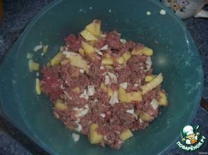 2 вариант начинки - фарш + одна картофелина + ложка майонеза.