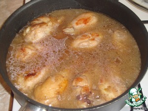 Заливаем бульоном, накрываем крышкой и тушим 25 минут.