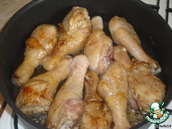 Выкладываем сюда же курочку (без лука) и обжариваем в течении 7 минут, переворачивая.