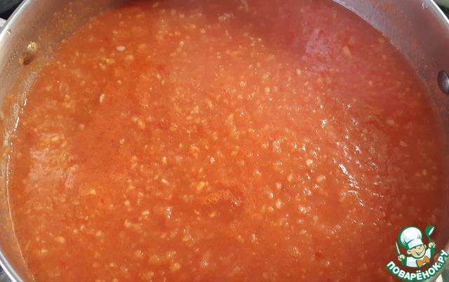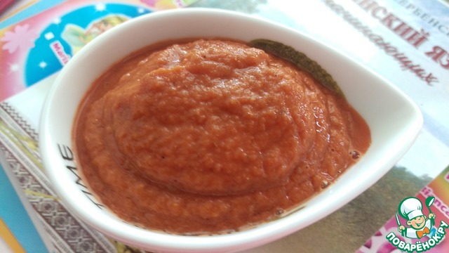 Средне острое блюдо, хорошо подходит как соус к мясу и очень вкусно намазывать на хлеб. За фото спасибо поваренку yuvl.
