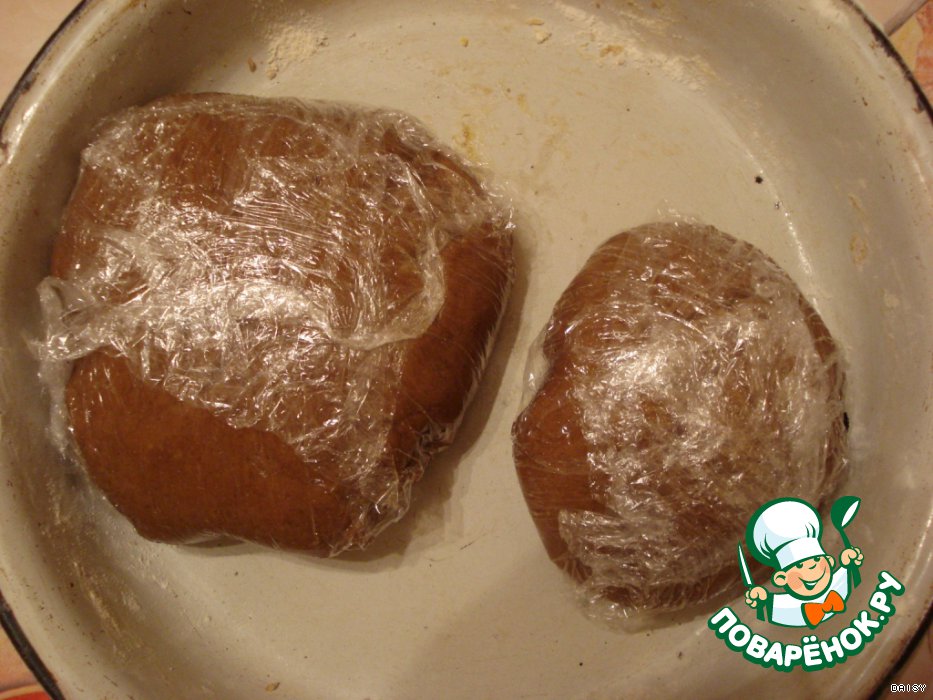 Пекла при температуре чуть выше той, на которой пекут бисквит (ну, нет у меня градусника!) минут 20-25. После того, как он немного остыл, накрыла полотенцем, чтобы стал мягче.