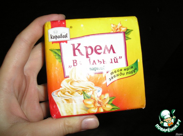 И ещё коржик с какао. Его мы при сборке тортика положим куда-нибудь в середину. А пока варим заварной крем. Я воспользовалась полуфабрикатом. Можно приготовить сметанный крем.