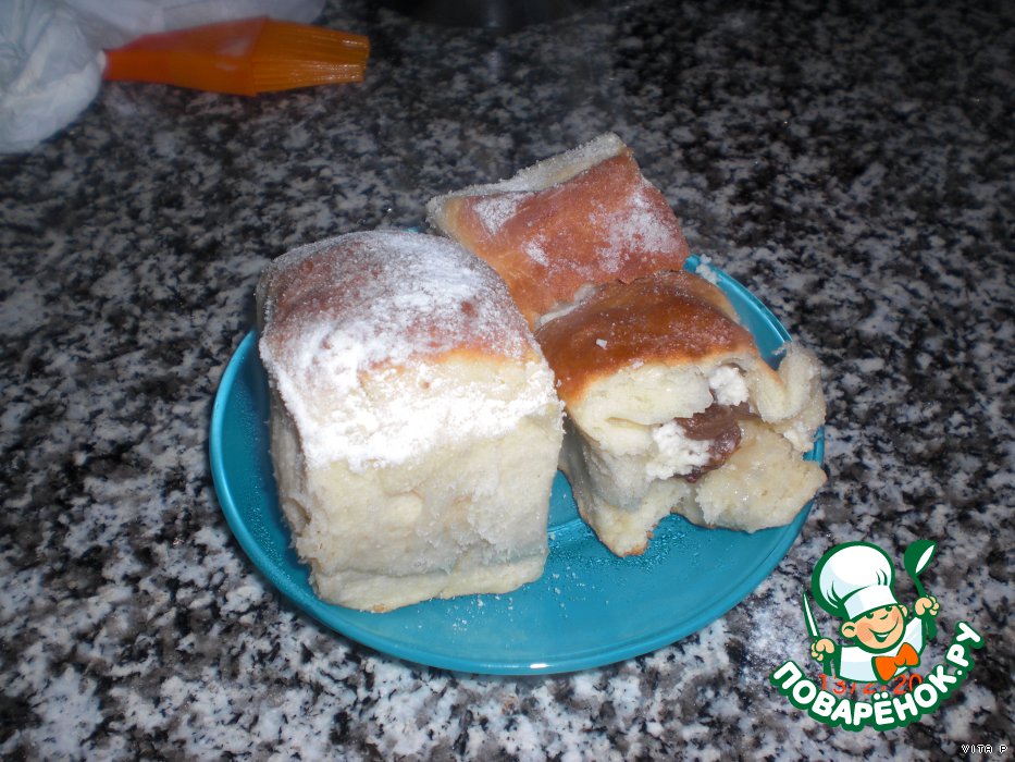 • Готовые пирожки-булочки присыпать сахарной пудрой.