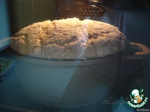 В форму его! - (у меня казаночек, смазанный тонко маслом и посыпанный мукой), даём подойти опять же в пакете - до увеличения объёма не менее чем в 2 р.