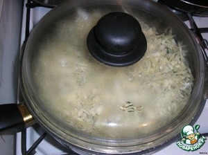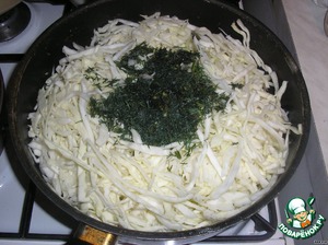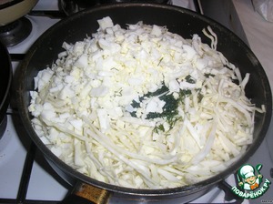 На сковороду наливаем масло, выкладываем мелко нашинкованную капусту,