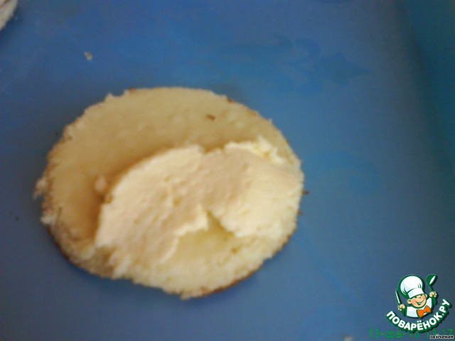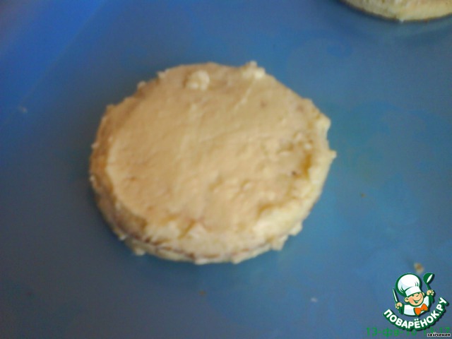 Затем сверху одного кружочка кладем второй и мажем кремом, (можно сделать и три кружочка и четыре, все на Ваше усмотрение)