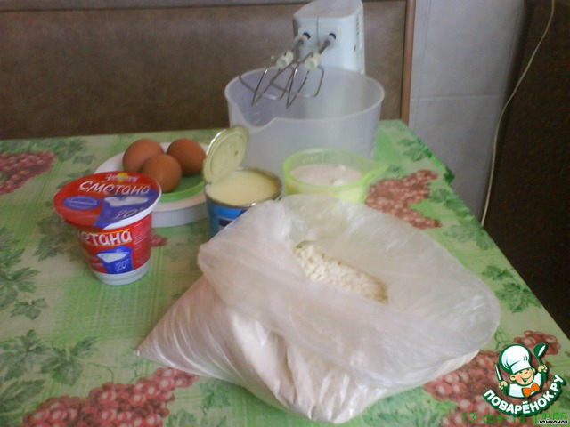 - Молоко сгущенное (в тесто 0,5 бан + 0,5 бан в крем) — 1 бан.