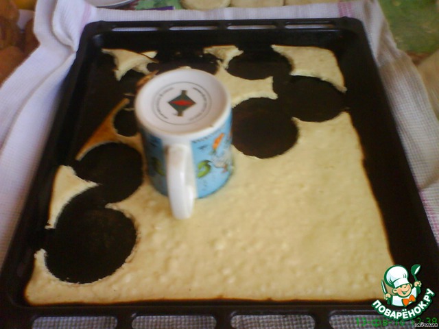 Достаем и, пока горячее, вырезаем кружочки (я это делала кружкой)