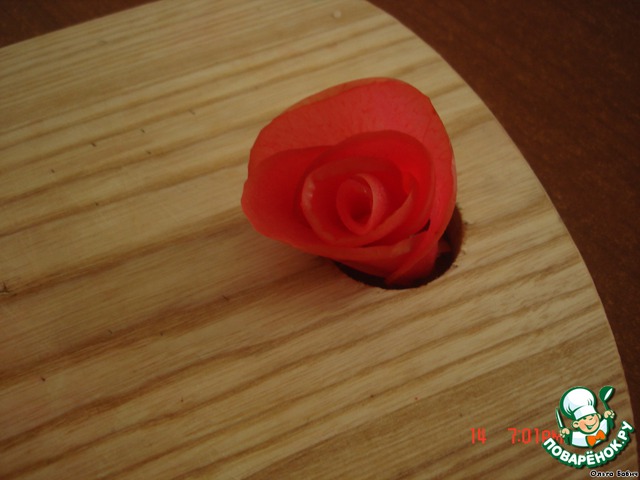 Яблоки порезала на овощерезке, проварила в сиропе, дала стечь и скрутила розочки.