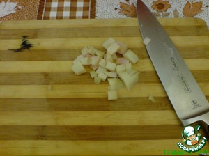 Картофель, отварить, остудить и нарезать небольшими кубиками.