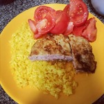 В тарелочке взбить яйца, в другую насыпать муки. Осторожно пальцами обеих рук взять отбивную и запанировать в муке... -