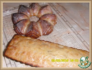 Делала в 2-х формах. По рецепту подавать с йогуртом (по желанию), [i]смазала глазурью (сах. пудра + лимонный сок).[/i]