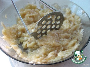 Бананы размять толкушкой для картофеля.