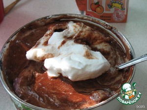 Аккуратно, в три приёма, ввести белки в шоколадную массу.