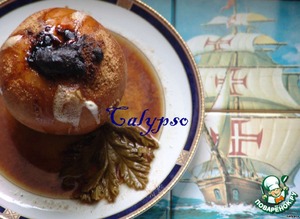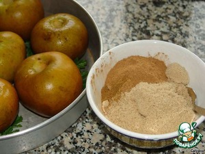 Наполнить смесью коричного сахара отверстия яблок, "с горкой". Осторожно налить на дно формы заранее приготовленную крепкую заварку черного чая. Заварка должна заполнить форму приблизительно на 1/3.