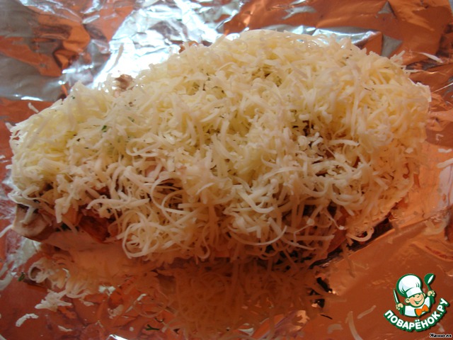 Сыр натираем на мелкой терке и выкладываем сверху.