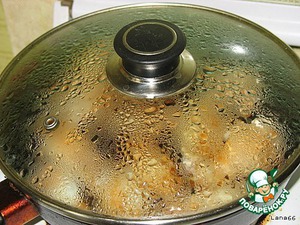 По истечении времени крышку снимаем и непрерывно переворачиваем крылышки до тех пор пока они не впитают в себя соус, и не пригорели. Всё это занимает приблизительно 15 - 20 минут.