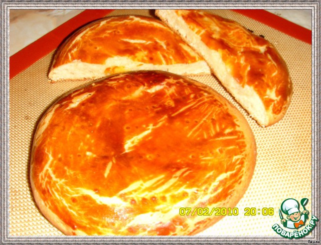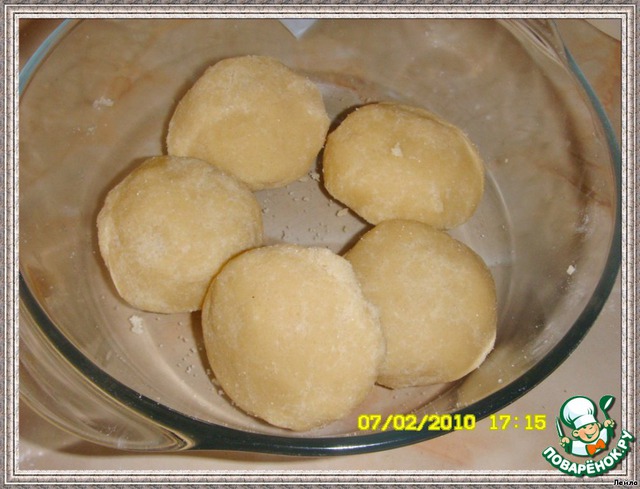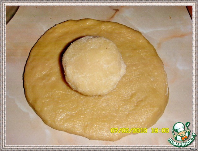 Слепливаем краешки лепешки над колобком, раскатываем толщиной в 1,5 см.