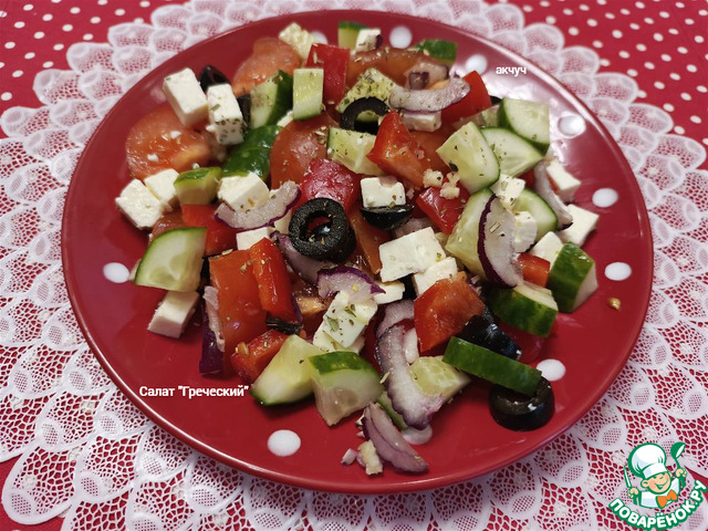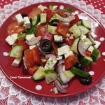 Сильно меня не ругайте, "Греческих" салатов на сайте множество, но я добавила кое-какие добавки и специи, вкус слегка изменился и салатик получился просто божественный. Вот я и решила поделиться с вами своим вариантом этой вкусной, витаминной полезности.