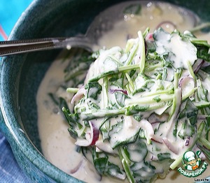 [+5]Я когда остатки из миски с заправкой попробовала, сделала такой салат с добавлением оливкового масла. К рыбе еще белый соус сделала,он особо не понадобился.