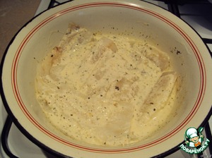 Приготовить соус для маринада: смешать в кастрюльке или в эмалированном блюде сливки или сметану, добавить 50 мл молока, специи, довести до кипения.