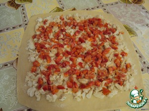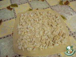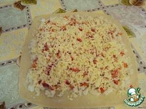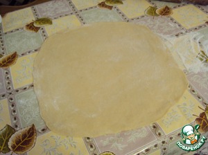 На столе, присыпаннoм мукой, раскатать пласт из теста.