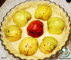 Яблоки уложить на тесто срезом вниз.