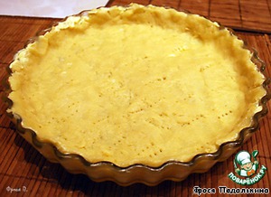 Разогреть духовку до 180 гр. Тесто раскатать, форму смазать сливочным маслом, выложить тесто, сформировав бортик. Выпекать 15 минут, затем форму вынуть из духовки.