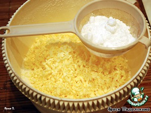 Муку и сахарную пудру просеять, добавить порезанное на кусочки масло, 1 яйцо и щепотку соли. Замесить тесто, завернуть в пищевую пленку, убрать в холодильник на полчаса.