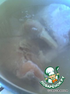 • В картофельный бульон закладываем рыбу, вариться cайда примерно 30 минут.