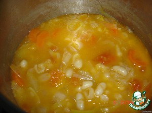 Обжаренные овощи добавляем в почти готовую фасоль, продолжаем варить.