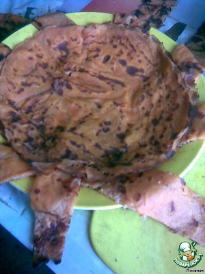 А теперь собираем пирог.(Фотка куда-то исчезла,но и на словах понятно.)