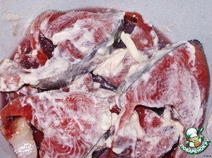 Рыбу почистить, нарезать ломтиками тольщиной примерно 1 см.