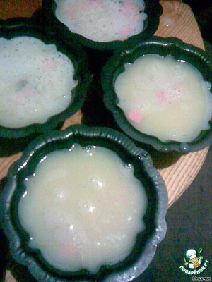 Забыла добавить - его можно делать в любых чашечках, стаканах, пиалках. Я готовила просто в стеклянных маленьких судках и баночках от йогурта, стеклянных. Никаких специальных формочек не нужно.