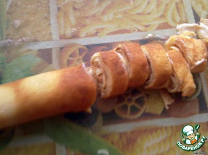 Когда блинчик скручен, нарезаем его на кусочки толщиной примерно 1 см