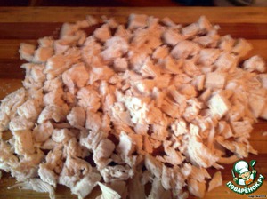 Филе куриное отварить, остудить и нарезать так же, как картофель