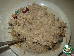 • Лук и грибы порезать на кусочки и перемешать вместе с гречкой в блендере.