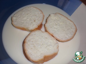 Молоко нальём в глубокую мисочку. Хорошо намочим в нём кусочки батона с обеих сторон.