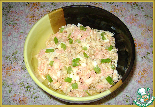 2 ст. ложки майонеза перемешать с 2 ст. ложки молока, добавить к вермишели и хорошо перемешать.