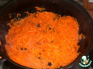 Морковку почистим, натрём на крупной тёрке и потушим на масле в сковородке под крышкой до готовности.