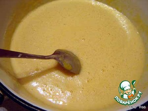 Смесь прогревать, постоянно размешивая, пока она не станет однородной и не станет пузыриться (примерно 10-15 мин).