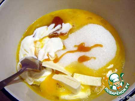 - Сметана (3 ст.л. в тесто, 1 кг в крем, + 1 ст. л. для глазури)