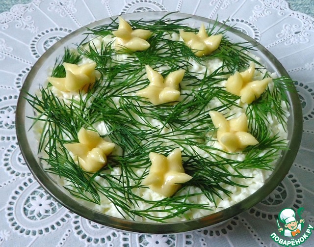 Мелко порезанный огурчик (у меня ушло 2), положить сверху, на него тертое яблоко на мелкой терке потертое.
