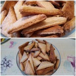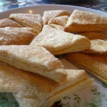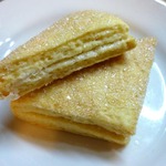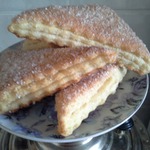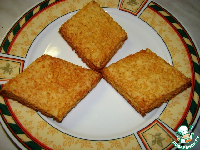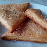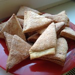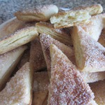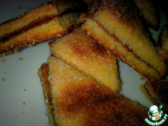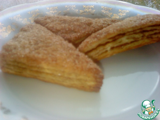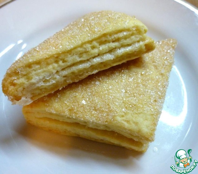У меня на всё-про-всё ушло 100 грамм сахара, то есть на посыпку слоёв и обмакивание в него всех треугольничков. -