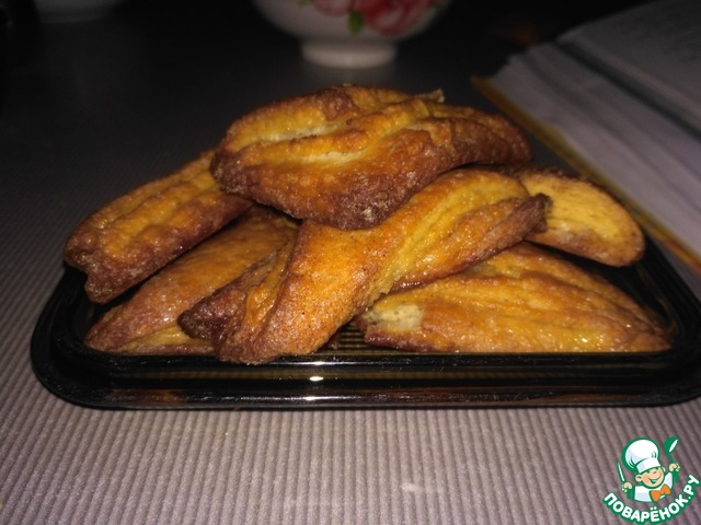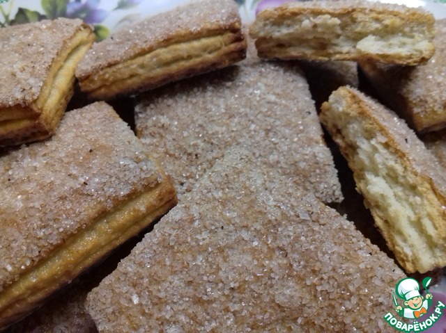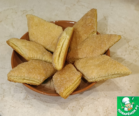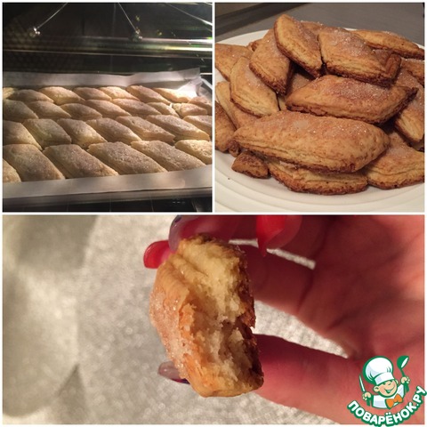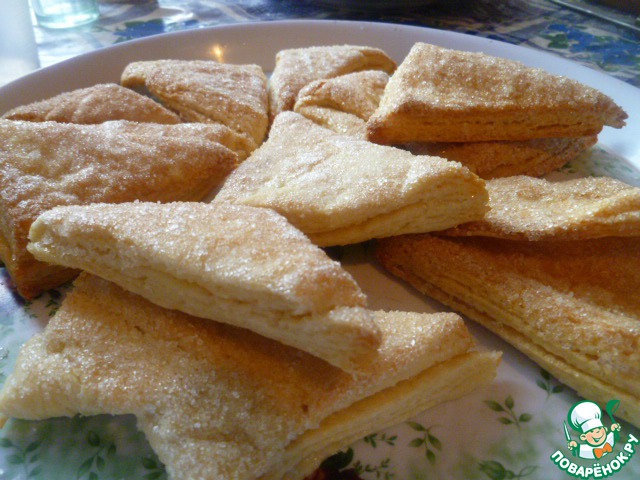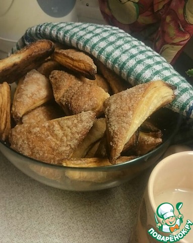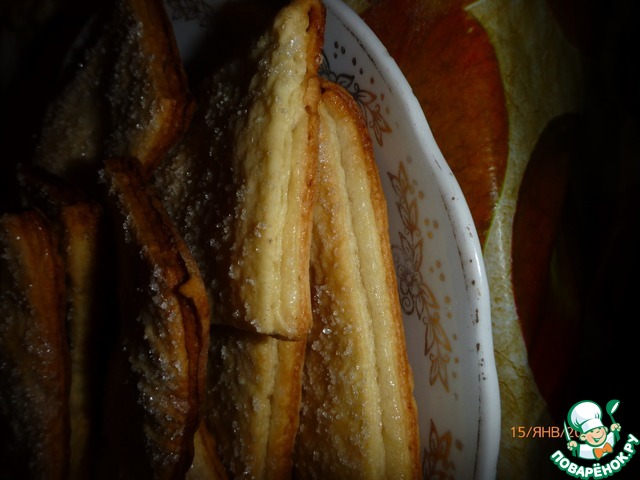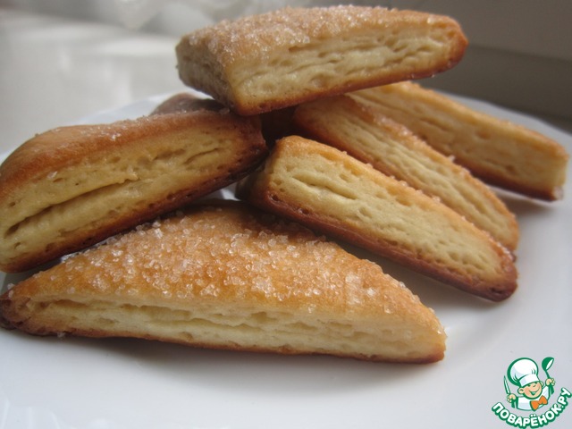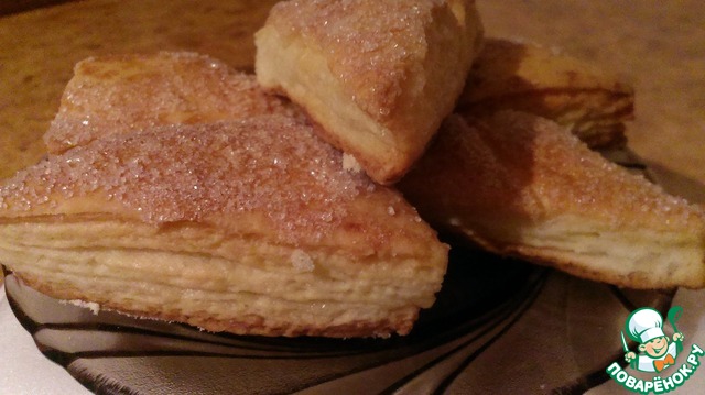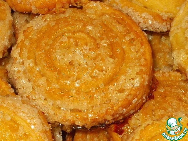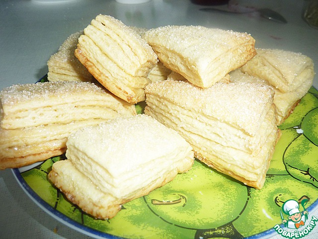 Хрустящее снаружи, мягкое внутри, с нежной слоистой структурой, в меру сладкое, печенье из слоеного дрожжевого теста, в которое невозможно не влюбиться! Половина противня исчезла вечером за чашкой чая, вторая половина была уничтожена на следующее утро.