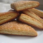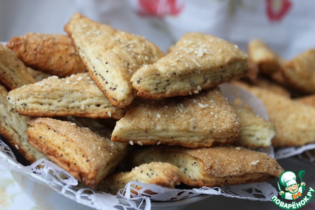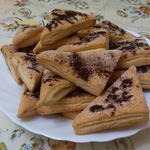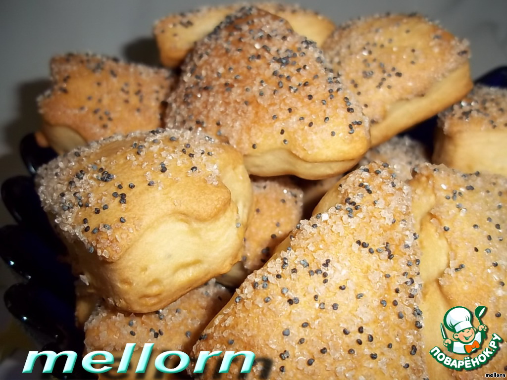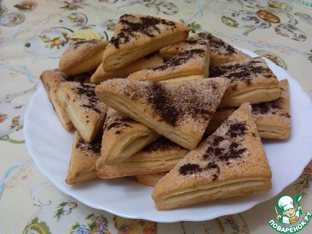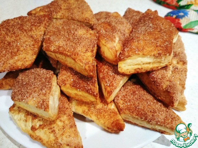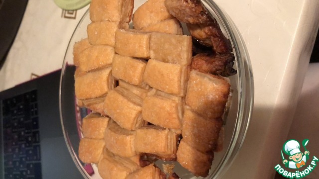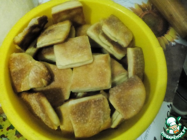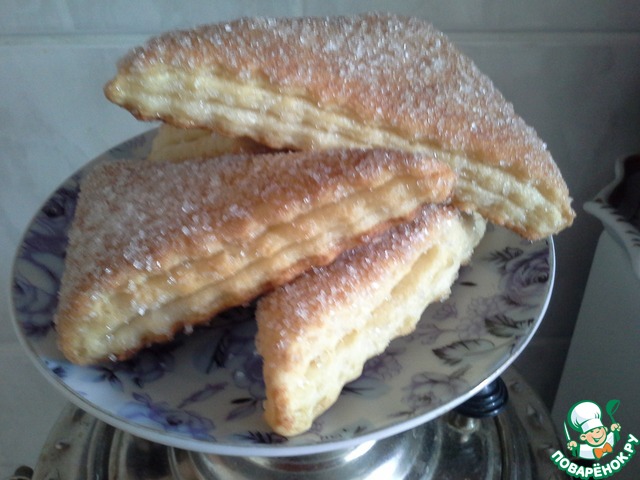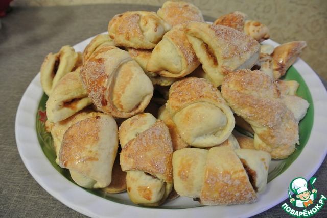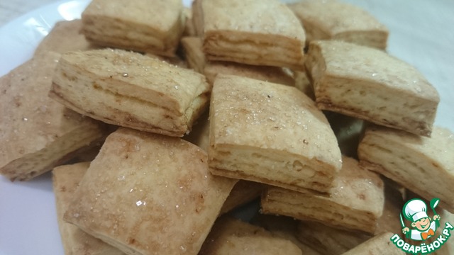 Хрустящее снаружи, мягкое внутри, с нежной слоистой структурой, в меру сладкое, печенье из слоеного дрожжевого теста, в которое невозможно не влюбиться! Половина противня исчезла вечером за чашкой чая, вторая половина была уничтожена на следующее утро.
