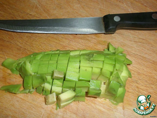 Отварить пару мин. брокколи. Все это аккуратно смешать.