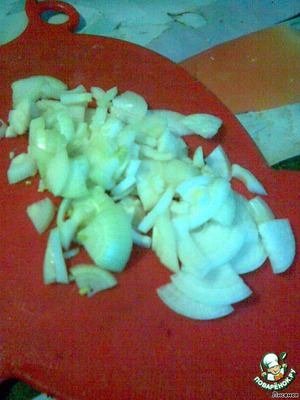 Лук нарезать четверть кольцами, залить кипятком и тут же его слить. Лук должен быть хрустящим, но не горьким.