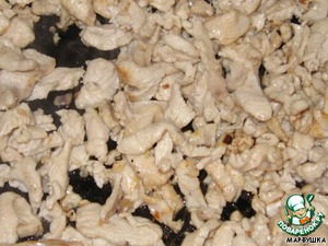 Филе курицы режем и обжариваем до готовности на сковороде.