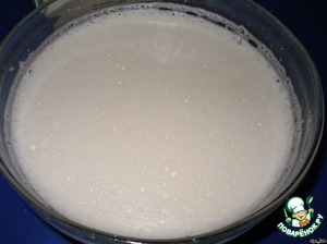 Для начала делаем опару. Перед тем, как дрожжи закладывать в опару, размешиваем их в тёплом молоке (1-2 ч.л.) и щепотке сахара.